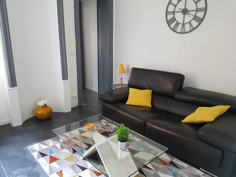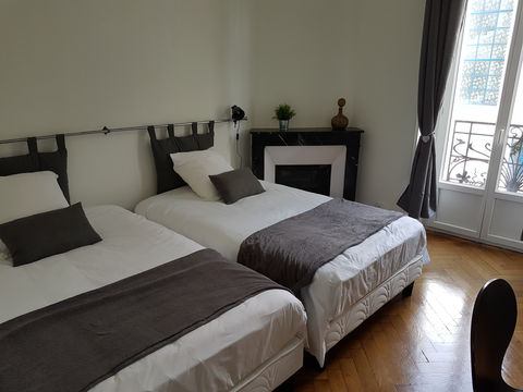 On the first floor, the entirety of the apartment was renovated in 2018. It contains 2 bedrooms, one with 2 simple XL beds (120cm) and the other with 1 160cm bed. Furnished with quality amenities are at your disposition.
